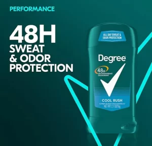- Degree’s Cool Rush antiperspirant deodorant with 48H non-stop protection, non-stop confidence, making it one of their best deodorant for men that’s strong enough to keep up with you all day